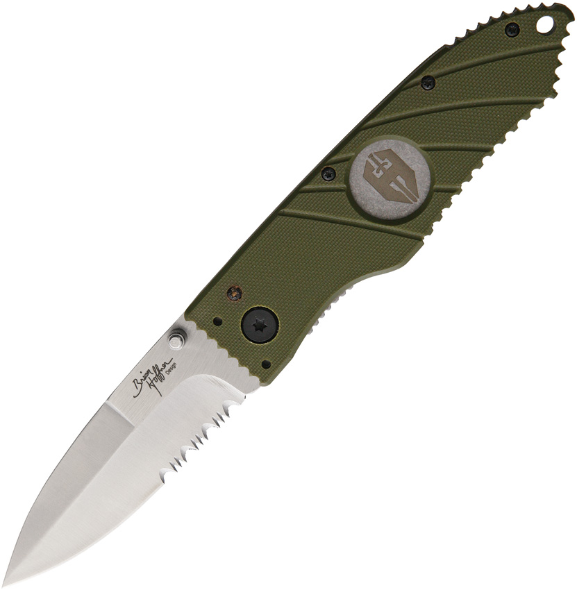 Type: Linerlock; Closed: 4.875″; Blade: 3.5″ l Stainless l Partially Serrated Edge l Matte Finish; Handle: Green l G10; Other Info: Thumb Stud(s) l Lanyard Hole l Pocket Clip. Boxed