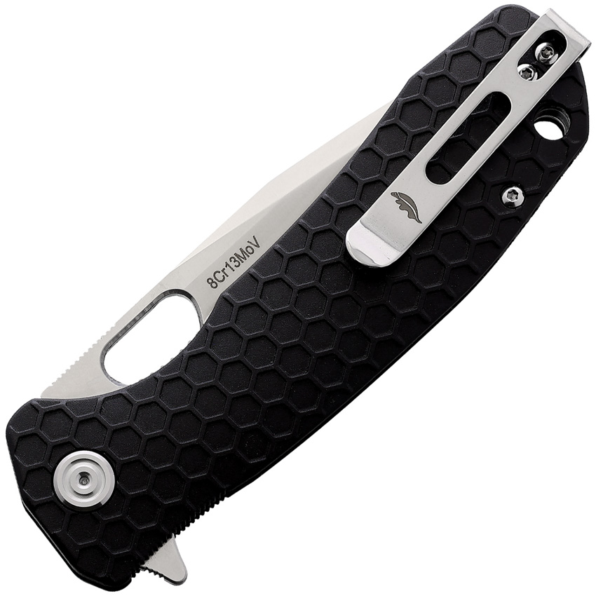 4.63″ (11.76cm) closed. 3.63″ (9.22cm) satin finish 8Cr13MoV stainless tanto blade. Black textured nylon handle. Extended tang. Thumb pull. Lanyard hole. Pocket clip. Boxed.