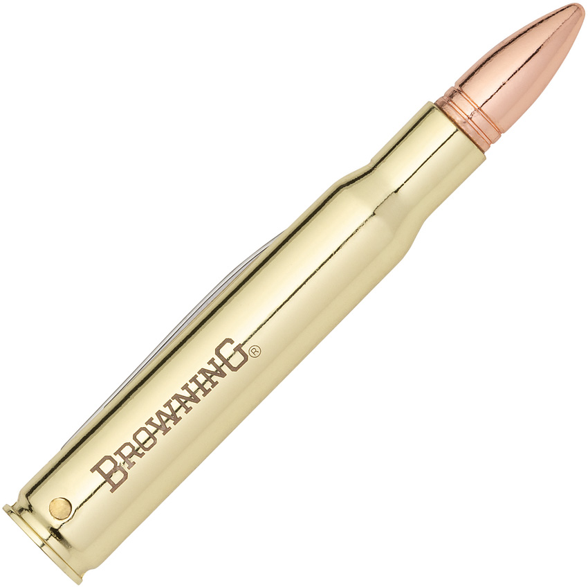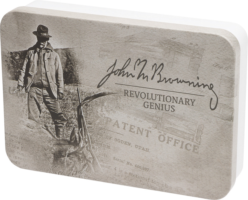 Includes: 3.75″ closed Gunstock folder with drop point and pen blades and pakkawood handles; 3.13″ closed Bullet folder with pen blade and bullet shaped metal handle; Key ring. Gift tin with John M. Browning artwork. Clam packed.