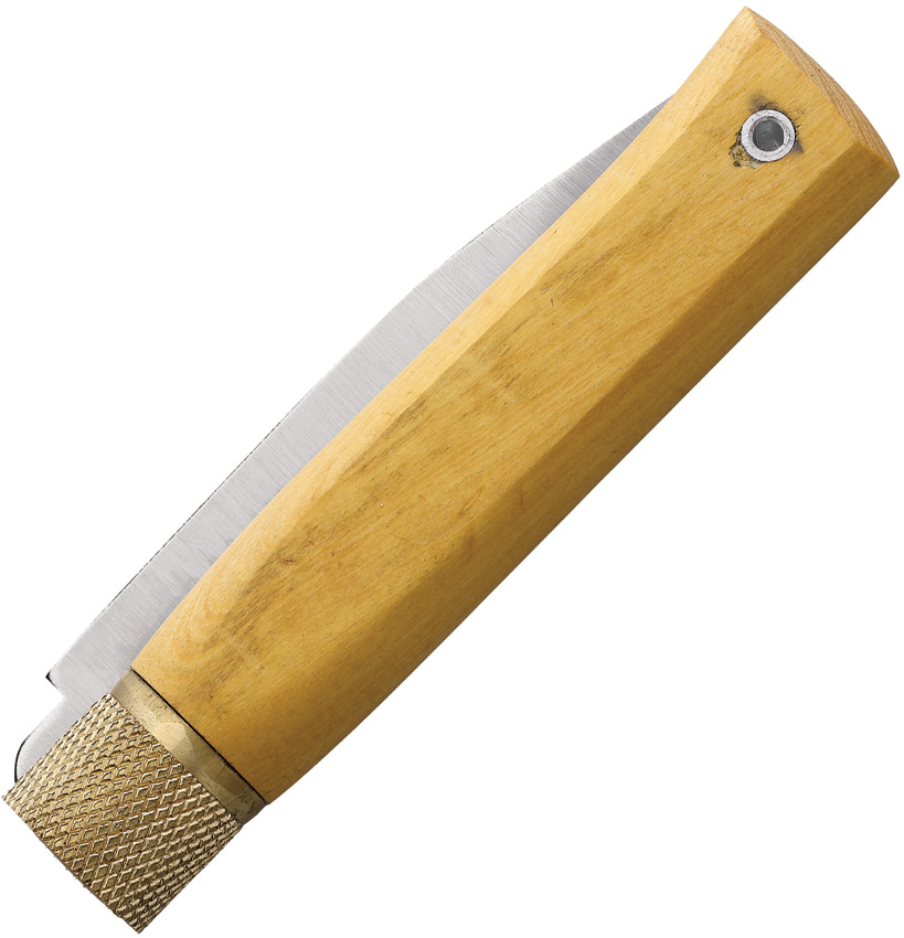 4.25″ (10.8cm) closed. 3.25″ (8.26cm) satin finish carbon steel blade. Lanyard hole. Brass locking ferrule. Boxwood handle. Boxed.