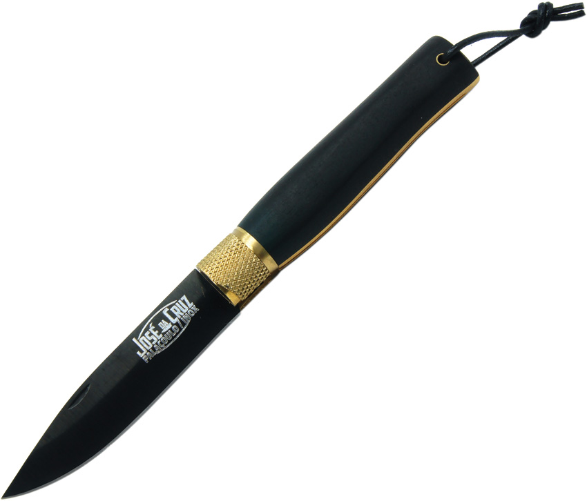 4.25″ (10.8cm) closed. 3.25″ (8.26cm) black finish stainless clip point blade. Brass bolster(s). Lanyard hole. Ebony and boxwood handle. Boxed.