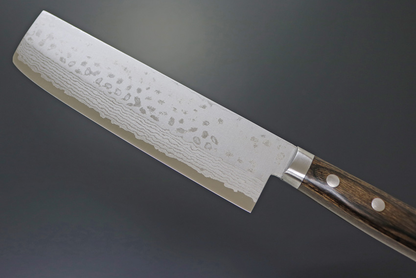11.63″ (29.54cm) overall. 6.5″ (16.51cm) Damascus steel blade. Brown wood handle. Stainless bolster(s). Boxed.