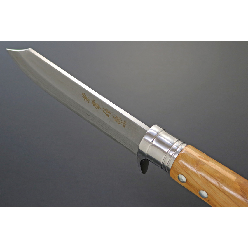 11.5″ (29.21cm) overall. 6″ (15.24cm) Damascus steel blade. Brown wood handle. Metal alloy guard. Brown leather belt sheath. Boxed.