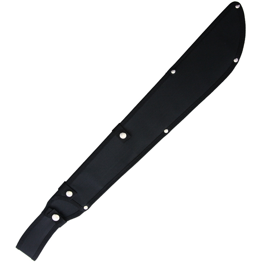 23.75″ (60.33cm) overall. 18″ (45.72cm) black finish stainless blade. Black rubberized synthetic handle. Full tang. Black nylon belt sheath. Clam packed.