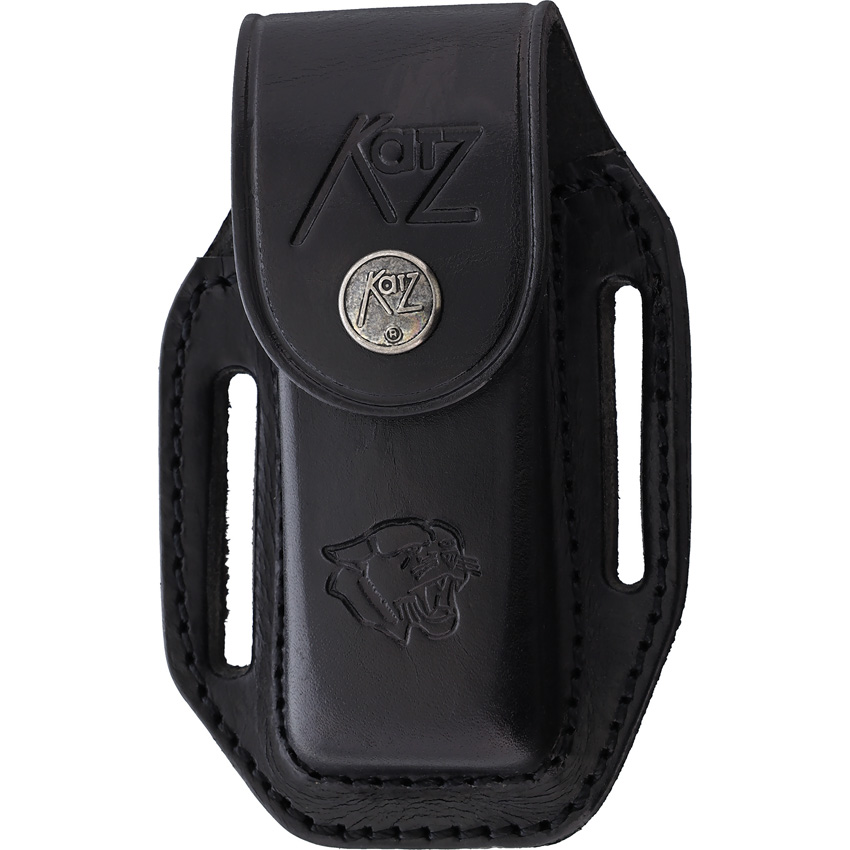 3.88″ (9.86cm) closed. 2.88″ (7.32cm) satin finish stainless drop point blade. White smooth micarta handle. Stainless bolster(s). Thumb disk. Inlay shield. Black leather belt sheath. Boxed.