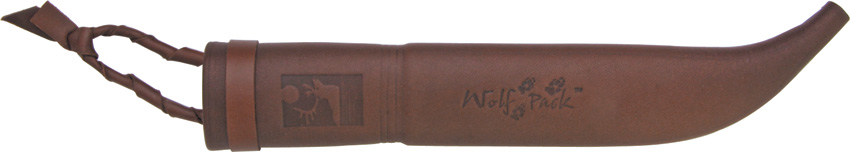 10 5/8″ overall. 5 3/4″ carbon steel blade. Stained curly birch handle with brass ferrule. Embossed leather belt sheath.