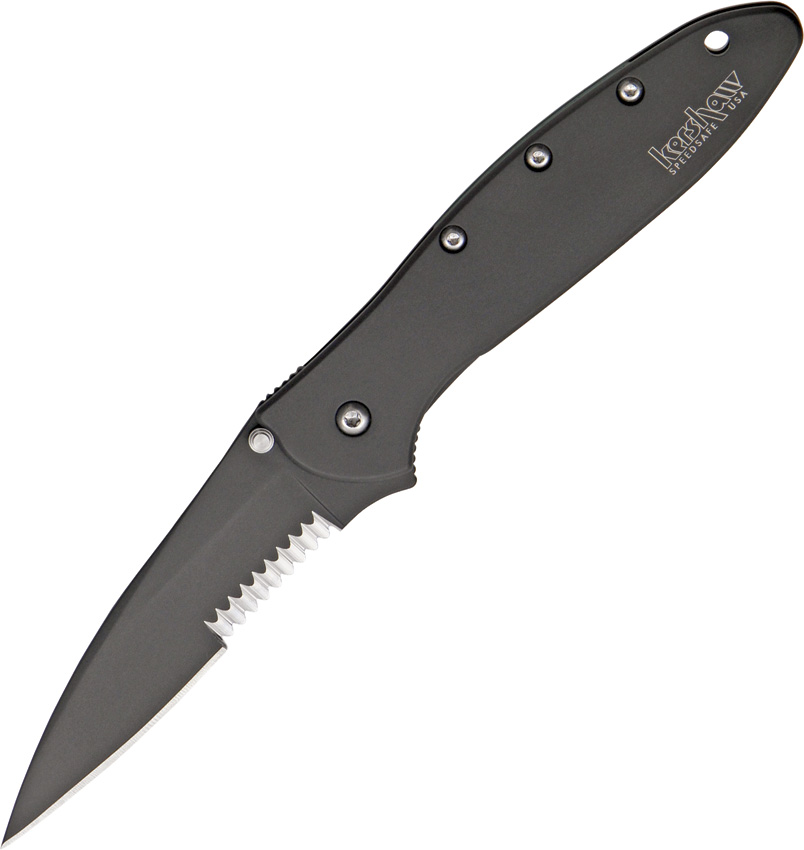 Assisted opening. 4″ closed. 3″ black Tungsten DLC coated partially serrated 14C28N Sandvik stainless blade. Black Tungsten DLC stainless handle. Extended tang. Thumb stud. Pocket clip. Lanyard hole. Features SpeedSafe torsion bar mechanism. Boxed.