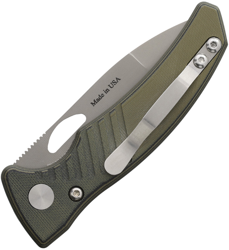 4.25″ (10.8cm) closed. 3.25″ (8.26cm) bead blast finish MagnaCut steel blade. OD green and black G10 handle. Thumb pull. Pocket clip. Boxed.