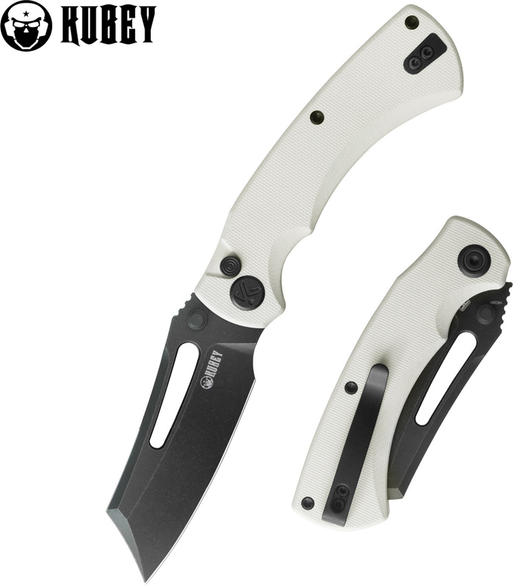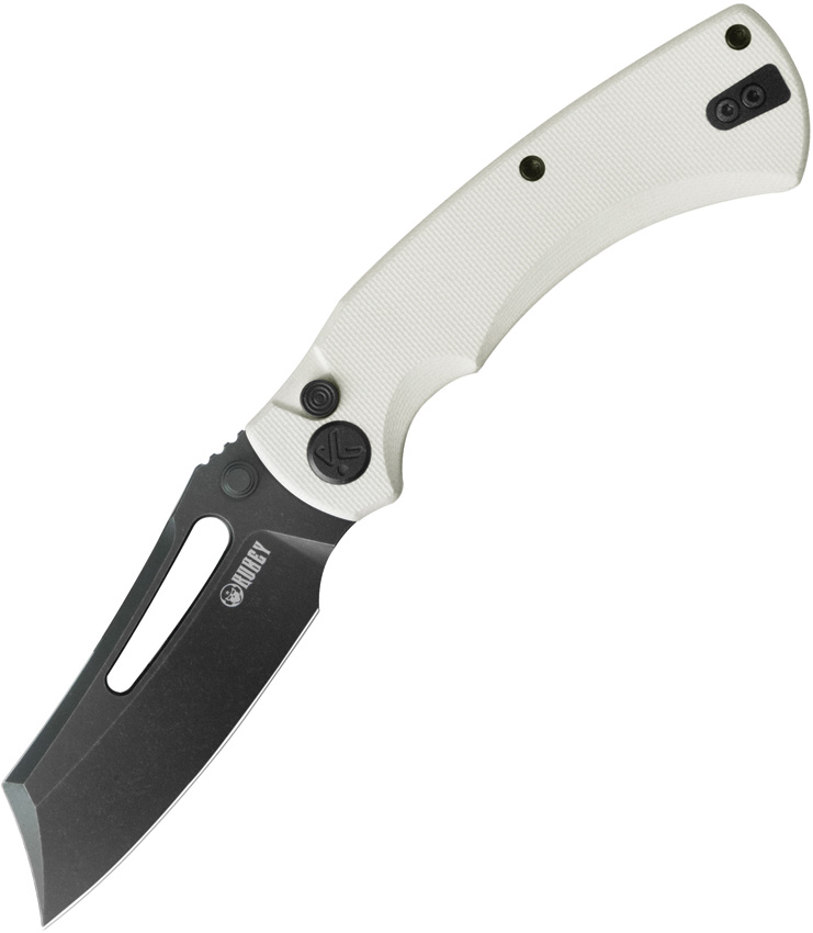 4.13″ (10.49cm) closed. 3.13″ (7.95cm) black stonewash finish 14C28N Sandvik stainless Wharncliffe blade. White G10 handle. Thumb stud. Thumb pull. Pocket clip. Boxed.