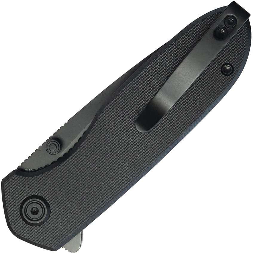 4″ (10.16cm) closed. 3″ (7.62cm) black stonewash finish AUS-10A stainless blade. Black G10 handle. Extended tang. Thumb stud. Pocket clip. Boxed.