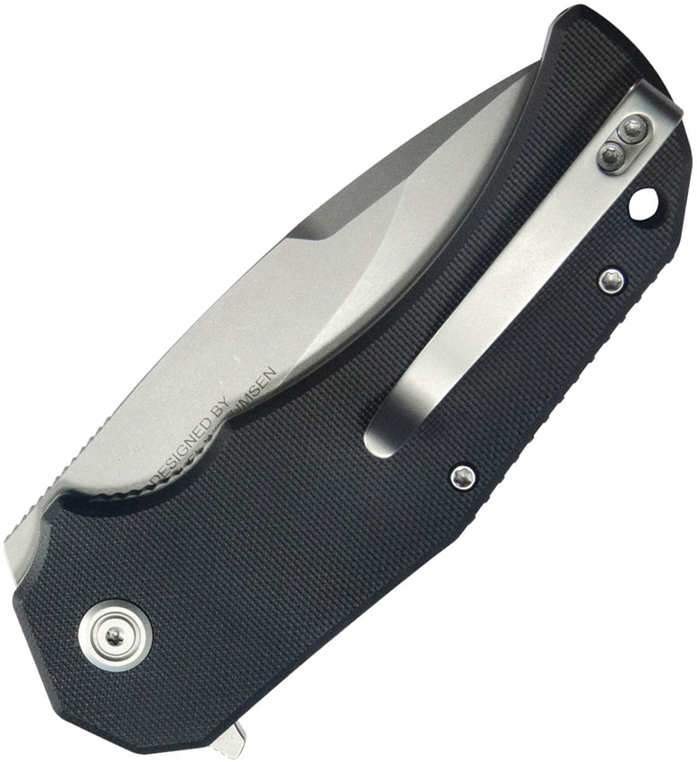 4.63″ (11.76cm) closed. 3.38″ (8.59cm) stonewash finish AUS-10A stainless drop point blade. Black G10 handle. Extended tang. Lanyard hole. Pocket clip. Boxed.
