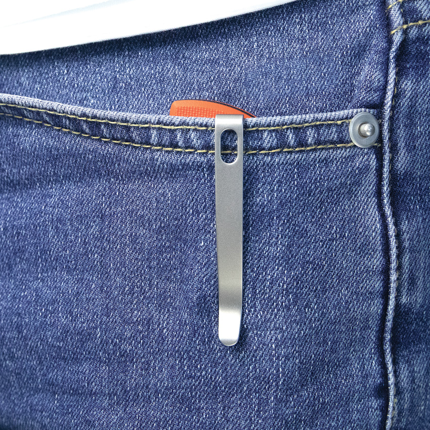 4.63″ (11.76cm) closed. 3.38″ (8.59cm) bead blast finish AUS-10A stainless drop point blade. Orange G10 handle. Extended tang. Lanyard hole. Pocket clip. Boxed.