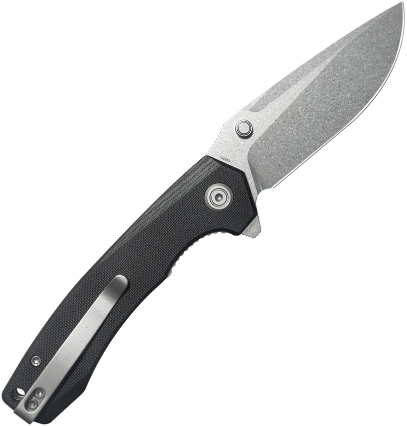 4.5″ (11.43cm) closed. 3.5″ (8.89cm) stonewash finish 14C28N Sandvik stainless blade. Black G10 handle. Extended tang. Thumb stud. Lanyard hole. Pocket clip. Boxed.