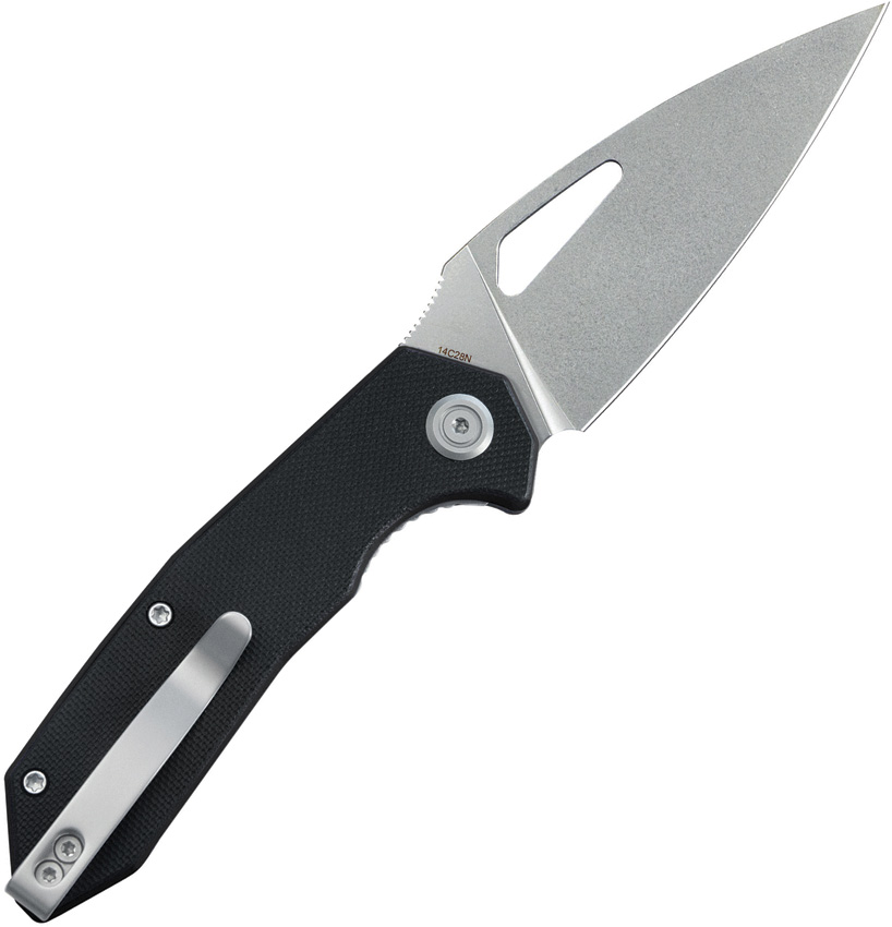 4.13″ (10.49cm) closed. 3.13″ (7.95cm) stonewash finish 14C28N Sandvik stainless blade. Black G10 handle. Pocket clip. Thumb pull. Boxed.