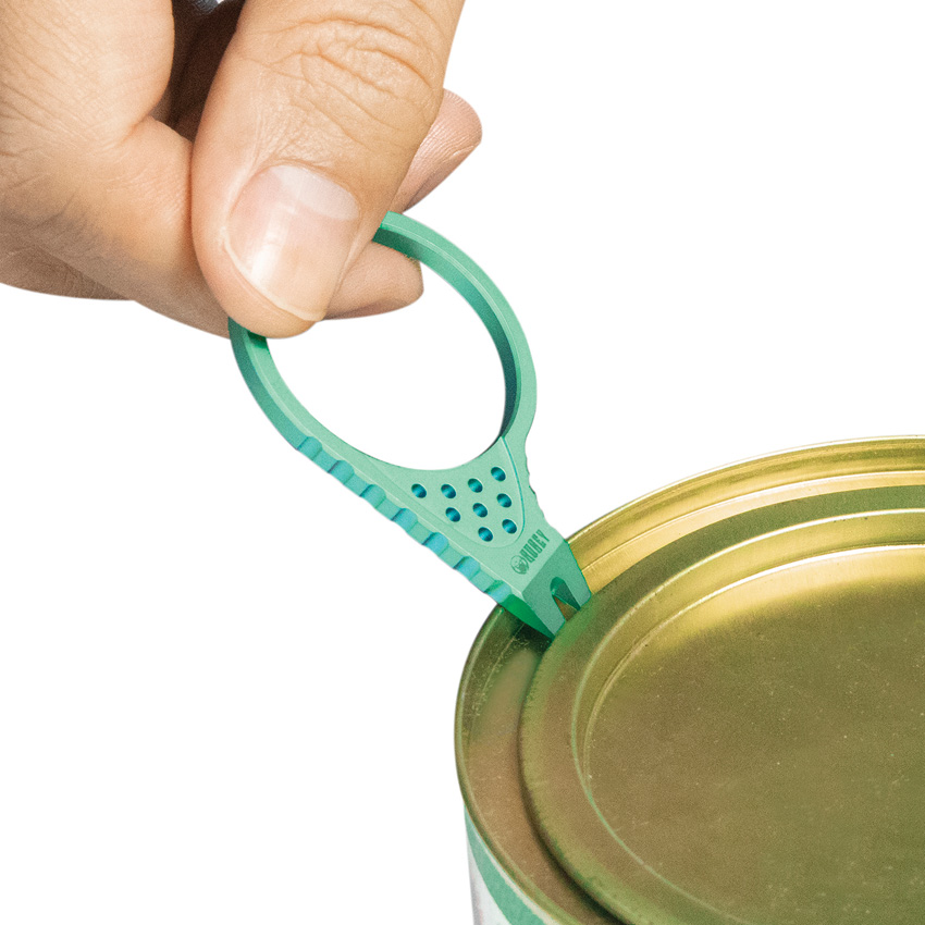 Dimensions: 2.16″ x 1.46″. Pry bar. Finger ring. Titanium construction. Boxed.