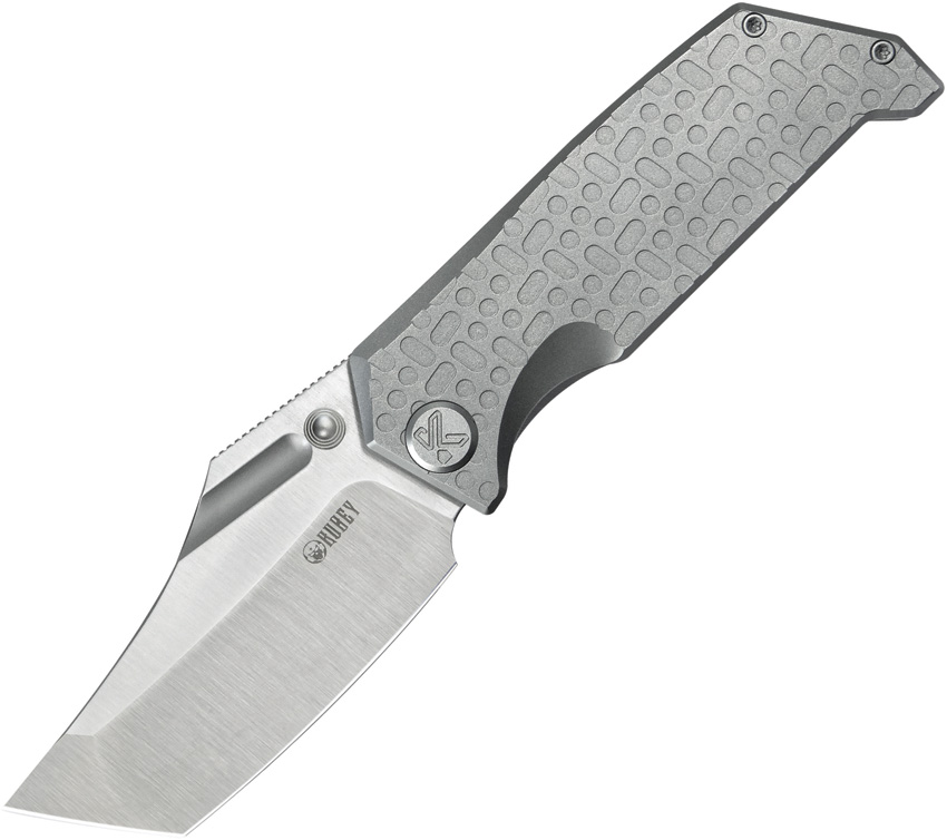 4.38″ (11.13cm) closed. 3.5″ (8.89cm) satin finish 14C28N Sandvik stainless clip point blade. Gray textured titanium handle. Thumb stud. Pocket clip. Black nylon zippered storage case. Boxed.
