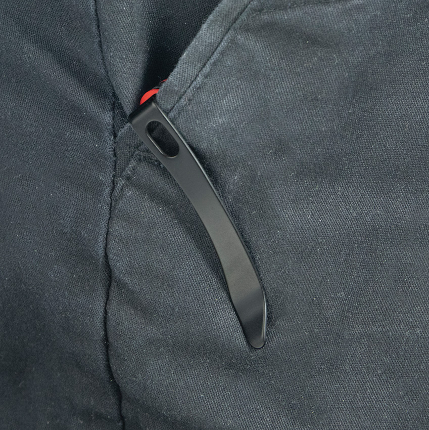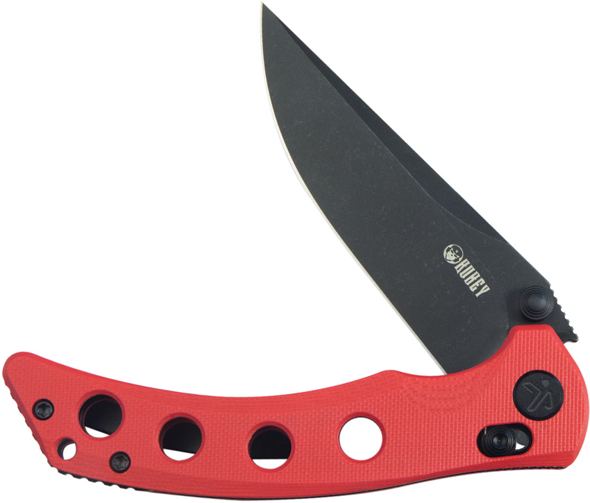 4.5″ (11.43cm) closed. 3.5″ (8.89cm) black stonewash finish 14C28N Sandvik stainless blade. Red G10 handle. Thumb stud. Lanyard hole. Pocket clip. Boxed.