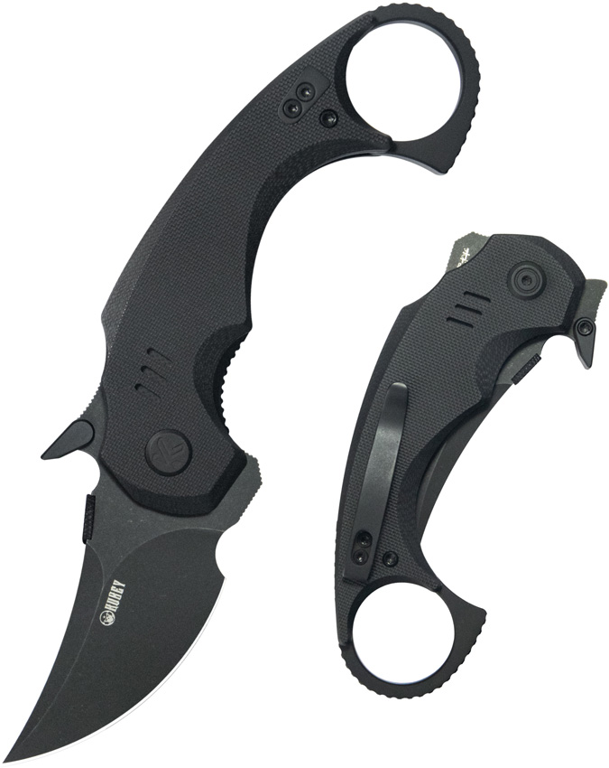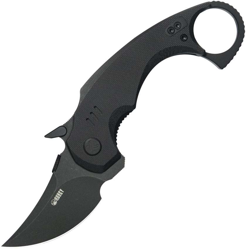 4.88″ (12.4cm) closed. 2.5″ (6.35cm) black stonewash finish 14C28N Sandvik stainless karambit blade. Black G10 handle. Thumb disk. Extended tang. Finger ring. Pocket clip. Boxed.