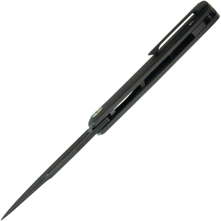 4.5″ (11.43cm) closed. 3.5″ (8.89cm) black stonewash finish 14C28N Sandvik stainless drop point blade. Black stonewash finish titanium handle. Extended tang. Thumb pull. Pocket clip. Boxed.