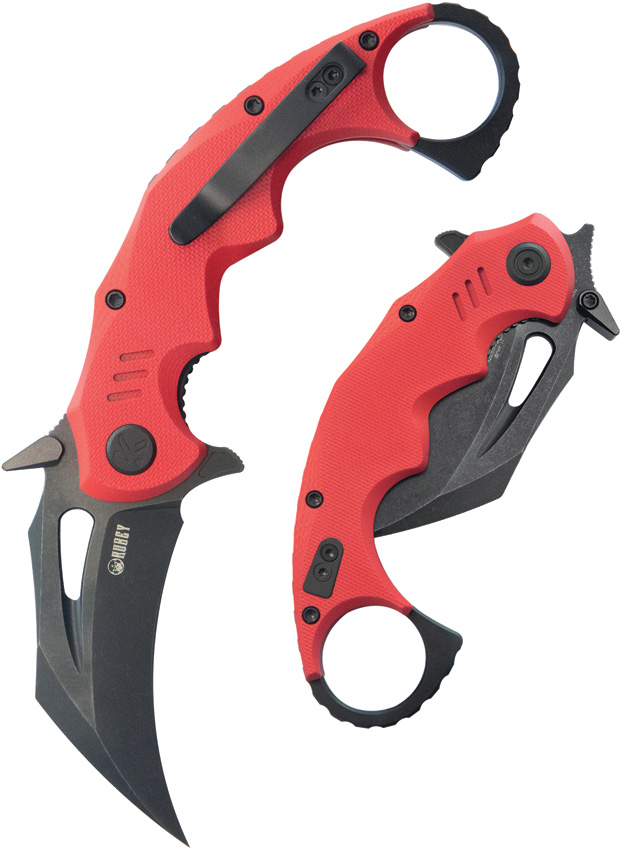 4.5″ (11.43cm) closed. 2.5″ (6.35cm) black stonewash finish 14C28N Sandvik stainless karambit blade. Red G10 handle. Finger ring. Extended tang. Thumb pull. Pocket clip. Black nylon zippered storage case. Boxed.