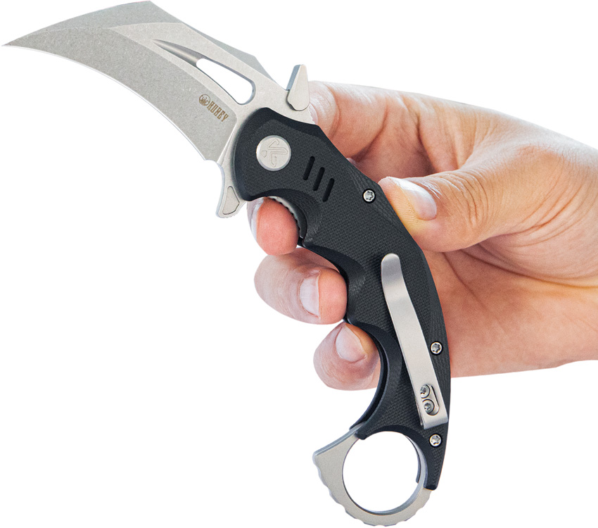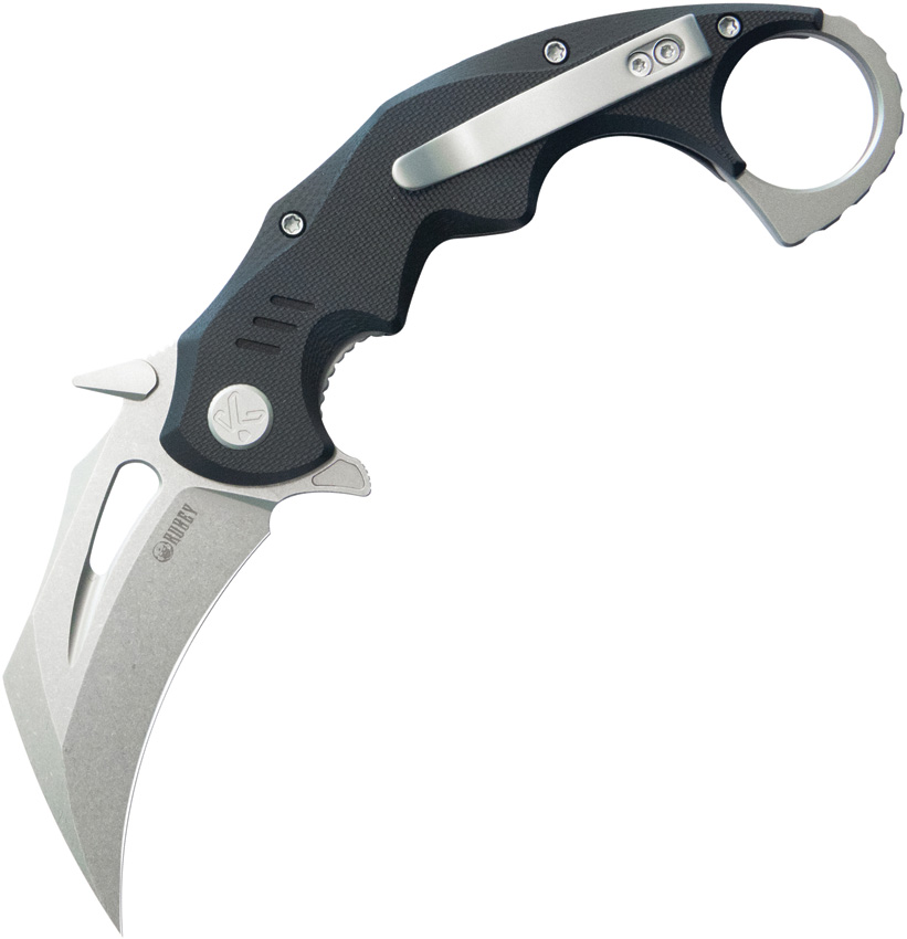 4.5″ (11.43cm) closed. 2.5″ (6.35cm) stonewash finish 14C28N Sandvik stainless karambit blade. Black G10 handle. Finger ring. Extended tang. Thumb pull. Pocket clip. Black nylon zippered storage case. Boxed.