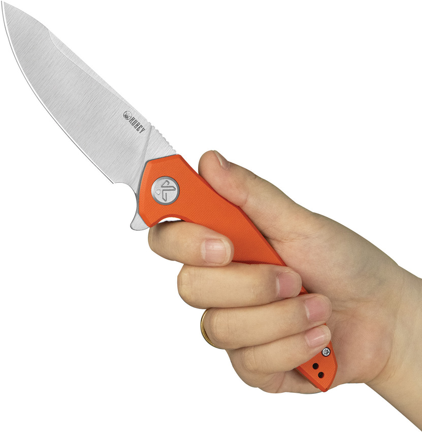 4.88″ (12.4cm) closed. 3.63″ (9.22cm) satin finish 14C28N Sandvik stainless drop point blade. Orange G10 handle. Extended tang. Pocket clip. Boxed.
