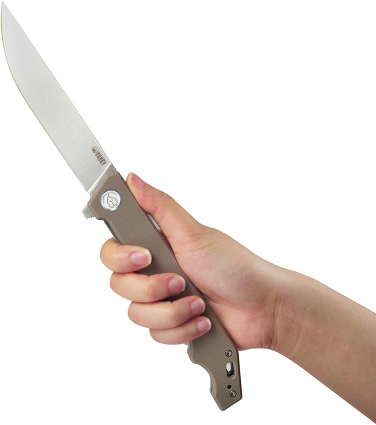 6″ (15.24cm) closed. 4.63″ (11.76cm) stonewash finish AUS-10A stainless blade. Tan G10 handle. Extended tang. Lanyard hole. Pocket clip. Boxed.