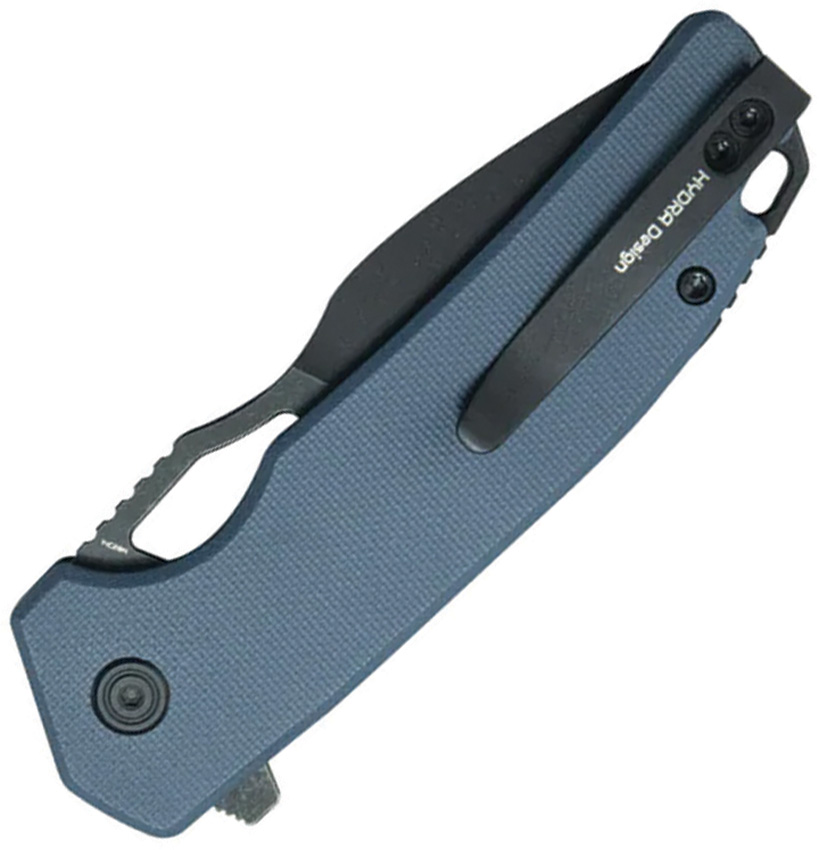 4.25″ (10.8cm) closed. 3.13″ (7.95cm) black stonewash finish 14C28N Sandvik stainless blade. Blue G10 handle. Extended tang. Thumb pull. Lanyard hole. Pocket clip. Boxed.