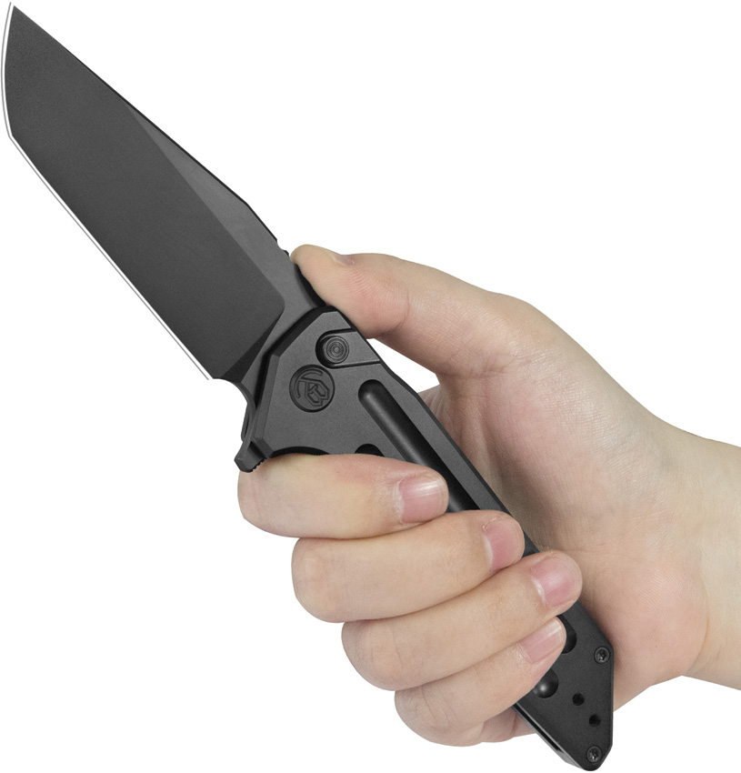 4.75″ (12.07cm) closed. 3.5″ (8.89cm) black DLC coated Bohler M390 stainless tanto blade. Black PVD coated titanium handle. Extended tang. Pocket clip. Boxed.