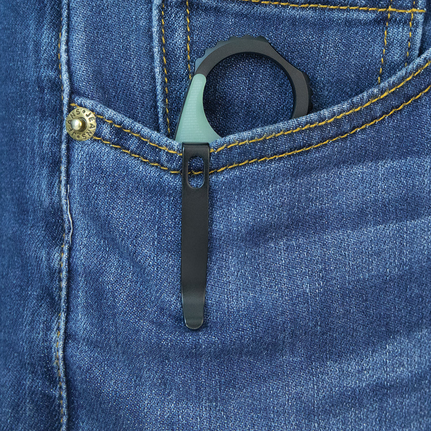 4.88″ (12.4cm) closed. 3″ (7.62cm) black stonewash finish 14C28N Sandvik stainless karambit blade. Jade G10 handle. Extended tang. Finger ring. Pocket clip. Thumb disk. Boxed.