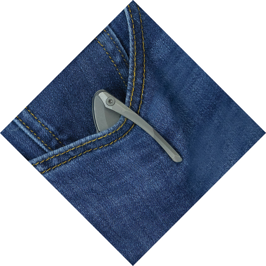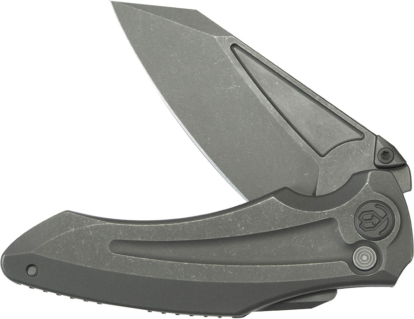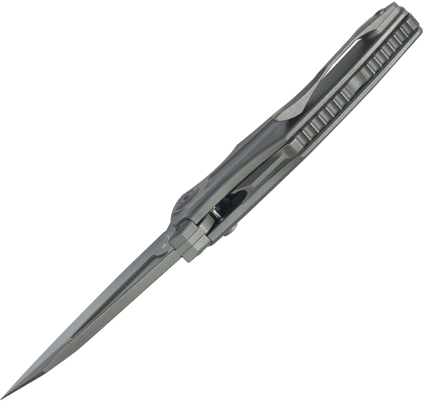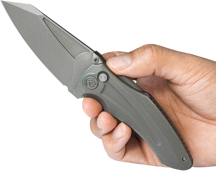 4.13″ (10.49cm) closed. 3.13″ (7.95cm) black stonewash finish CPM-20CV stainless blade. Black stonewash finish titanium handle. Thumb disk. Pocket clip. Boxed.