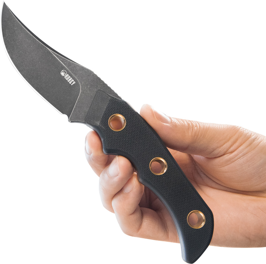 7.88″ (20.02cm) overall. 3.38″ (8.59cm) black stonewash finish 14C28N Sandvik stainless clip point blade. Black G10 handle. Full tang. Lanyard hole. Black Kydex belt sheath. Boxed.