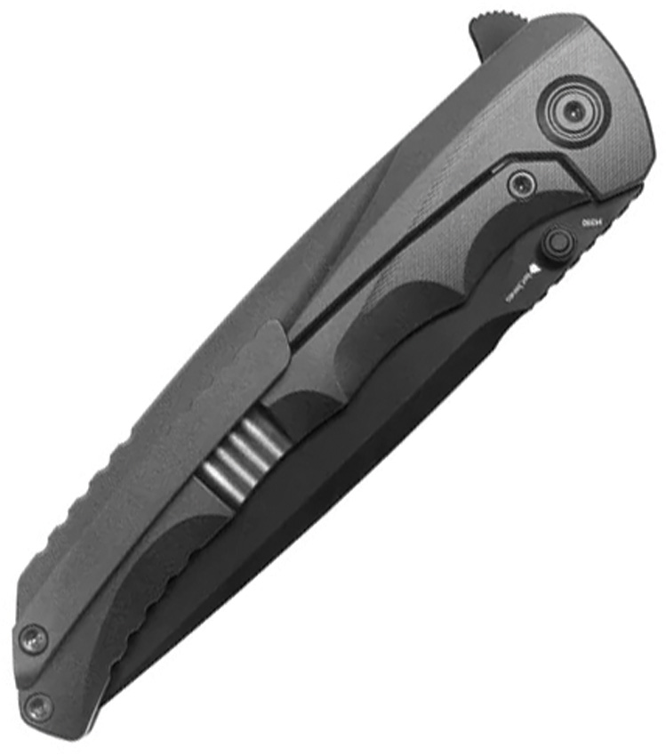 4.75″ (12.07cm) closed. 3.75″ (9.53cm) black DLC coated Bohler M390 stainless drop point blade. Black DLC coated titanium handle. Extended tang. Thumb stud. Pocket clip. Boxed.