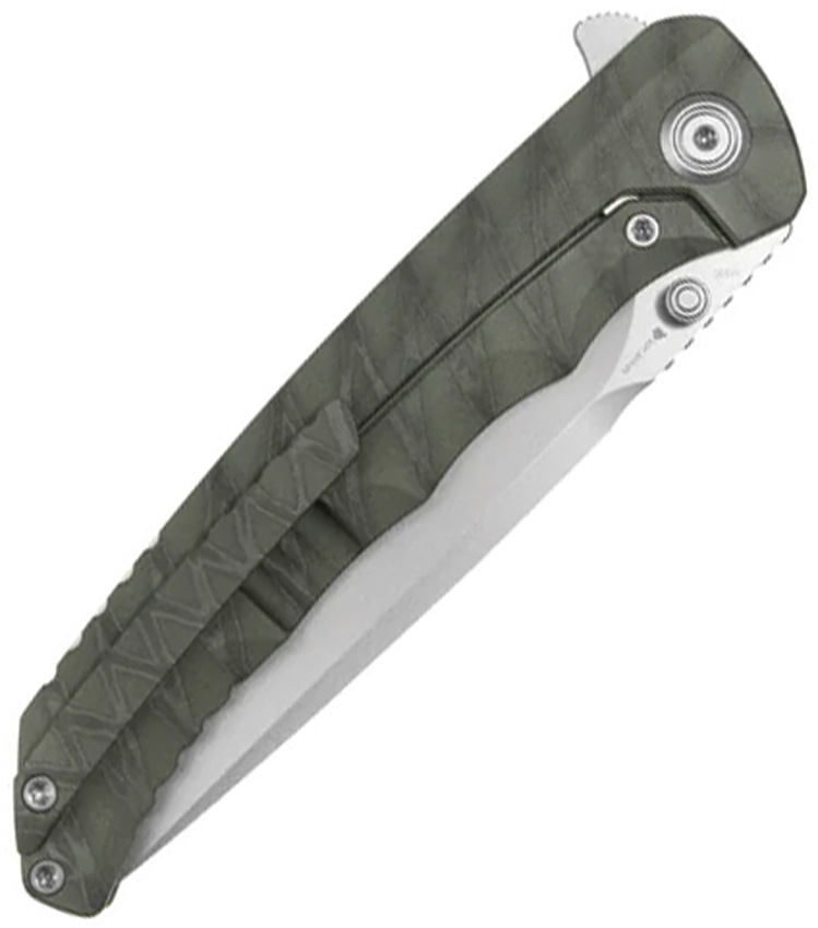 4.75″ (12.07cm) closed. 3.75″ (9.53cm) bead blast finish Bohler M390 stainless drop point blade. Flame anodized titanium handle. Extended tang. Thumb stud. Pocket clip. Boxed.