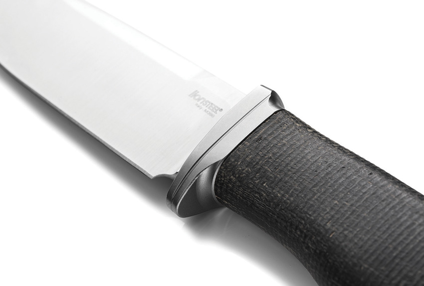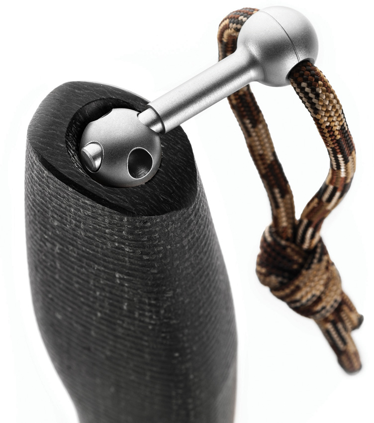 9.2″ (23.37cm) overall. 4.25″ (10.8cm) satin finish Bohler M390 stainless blade. Black burlap micarta handle. Titanium bolster(s). Blade tang goes ÒACross the HAndle