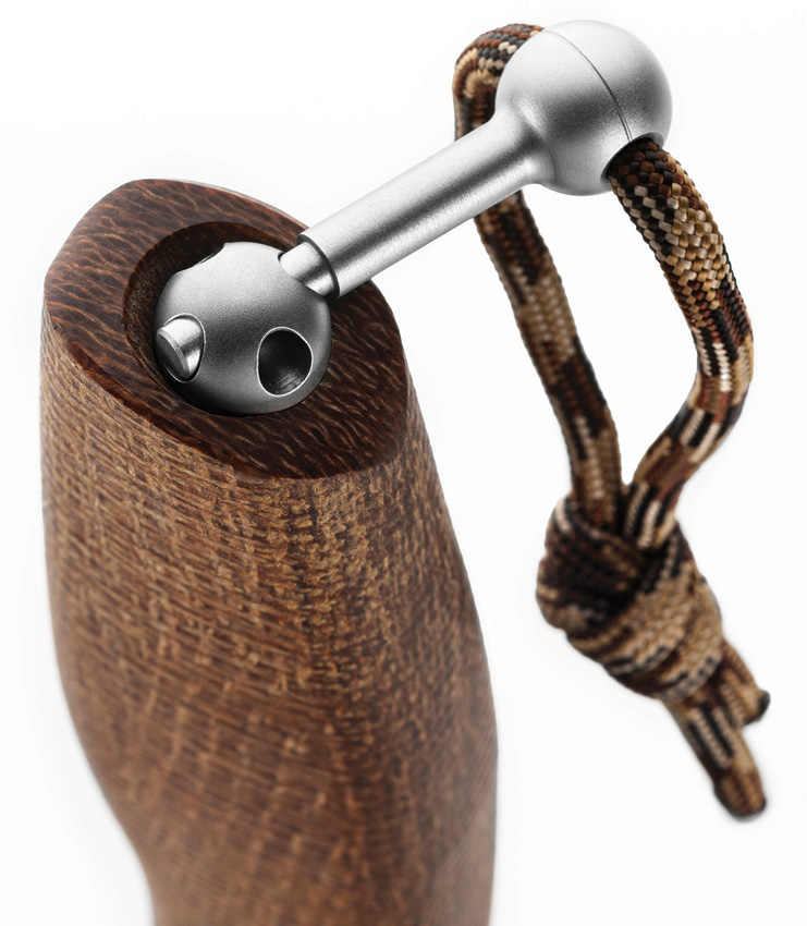9.2″ (23.37cm) overall. 4.25″ (10.8cm) satin finish Bohler M390 stainless blade. Natural burlap micarta handle. Titanium bolster(s). Blade tang goes ÒACross the HAndle