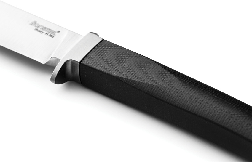7″ (17.78cm) overall. 3.13″ (7.95cm) satin finish Bohler M390 stainless blade. Black G10 handle. Titanium guard. Brown leather belt sheath. Boxed.