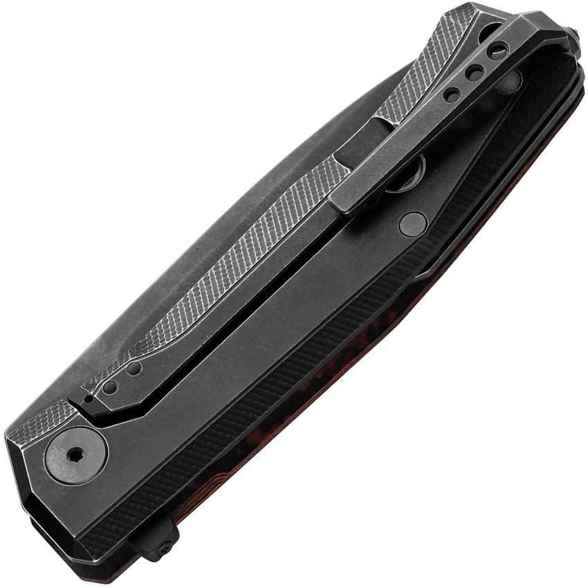 4.63″ (11.76cm) closed. 3.25″ (8.26cm) CPM MagnaCut stainless blade. Mars Valley Fat carbon fiber handle with black titanium back handle. Extended tang. Glass breaker. Lanyard hole. Pocket clip. Old black finish blade. Boxed.