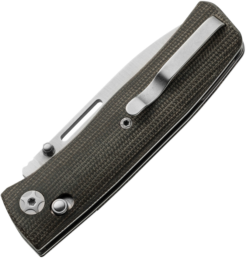 3.75″ (9.53cm) closed. 2.63″ (6.68cm) satin finish Bohler M390 stainless drop point blade. Green canvas micarta handle. Thumb stud. Pocket clip. Boxed.