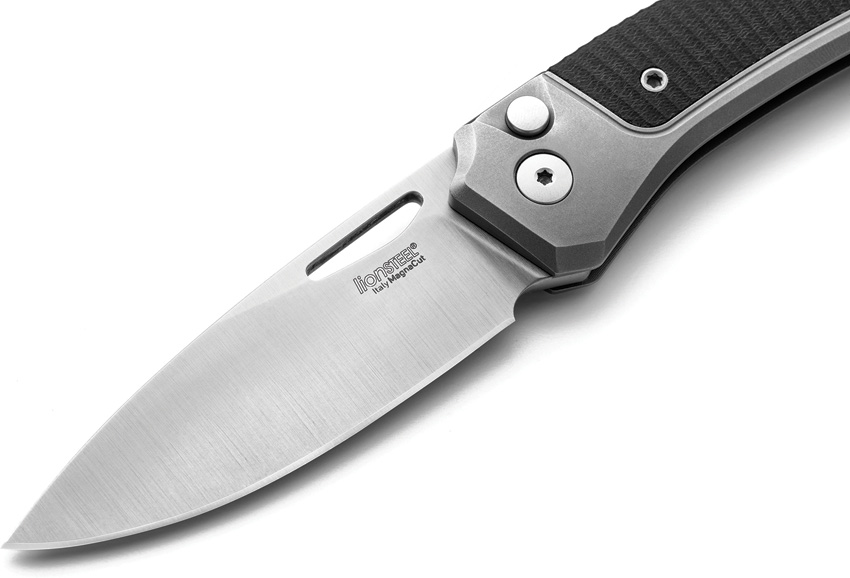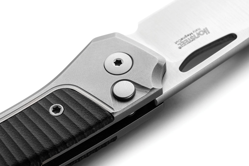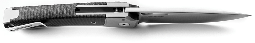 4.13″ (10.49cm) closed. 3.13″ (7.95cm) satin finish CPM MagnaCut stainless blade. Thumb pull. Lanyard hole. Pocket clip. Solid gray titanium handle and solid black G10 handle. Boxed.