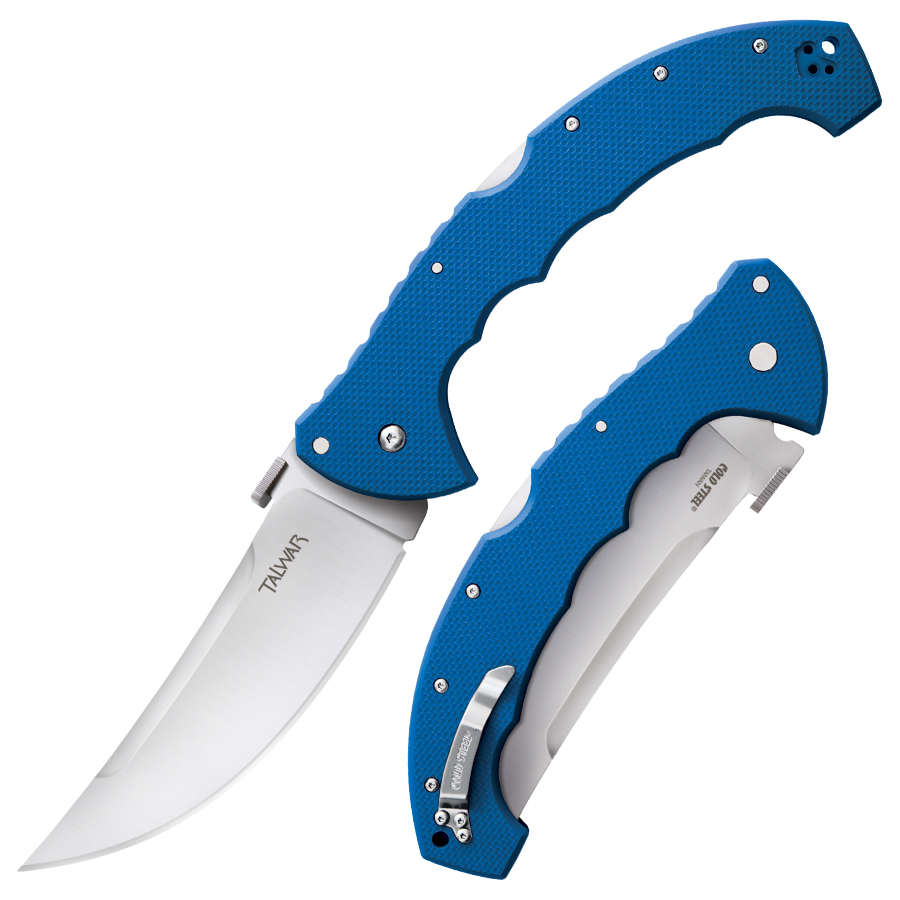 7.38″ (18.75cm) closed. 5.5″ (13.97cm) satin finish XHP steel blade. Blue G10 handle. Thumb disk. Lanyard hole. Pocket clip. This Cold Steel item is from Lynn Thompson’s personal collection and comes with a Certificate of Authenticity signed by Lynn Thompson. Boxed.