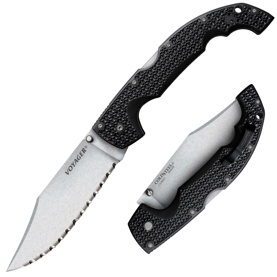 6.75″ (17.15cm) closed. 5.5″ (13.97cm) stonewash finish serrated CTS-BD1 stainless clip point blade. Black Griv-Ex handle. Thumb stud. Lanyard hole. Pocket clip. This Cold Steel item is from Lynn Thompson’s personal collection and comes with a Certificate of Authenticity signed by Lynn Thompson. Boxed.