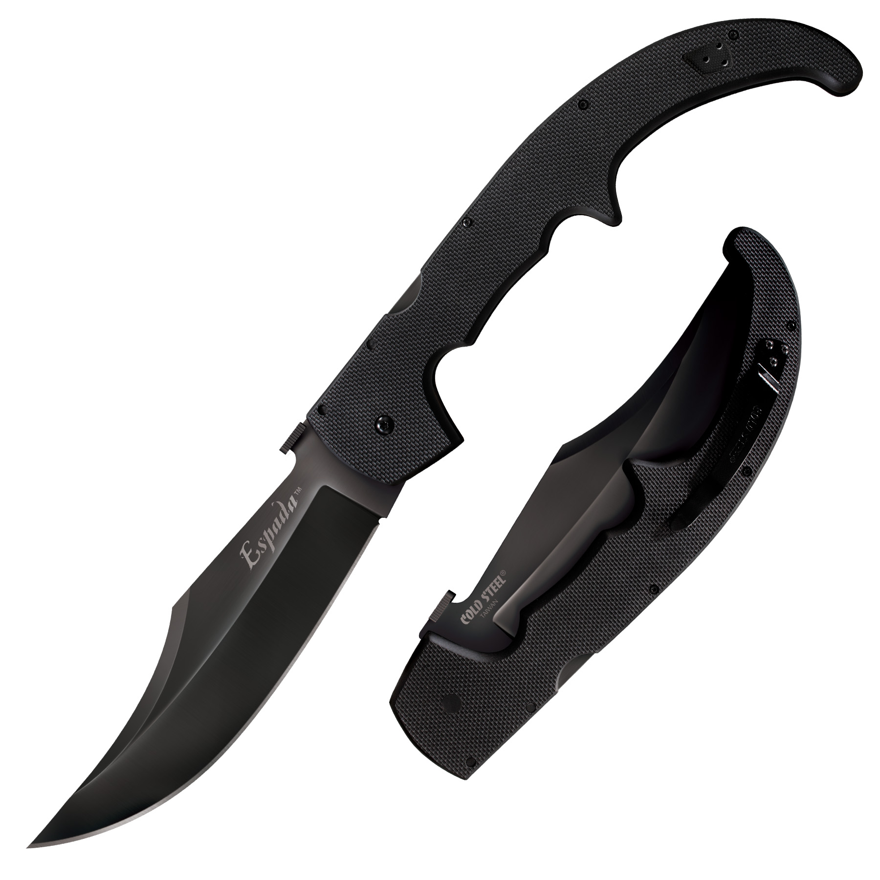 9.25″ (23.5cm) closed. 7.5″ (19.05cm) black DLC coated XHP steel clip point blade. Black G10 handle. Thumb disk. Pocket clip. Lanyard hole. New with no box. This Cold Steel item is from Lynn Thompson’s personal collection and comes with a Certificate of Authenticity signed by Lynn Thompson. Bagged.