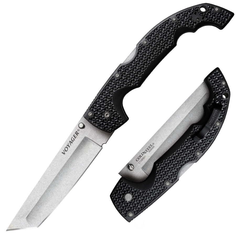 6.75″ (17.15cm) closed. 5.5″ (13.97cm) stonewash finish AUS-8A stainless tanto blade. Black Griv-Ex handle. Thumb stud. Lanyard hole. Pocket clip. Box is not correct for what you are getting. This Cold Steel item is from Lynn ThompsonÕs personal collection and comes with a Certificate of Authenticity signed by Lynn Thompson. Boxed.