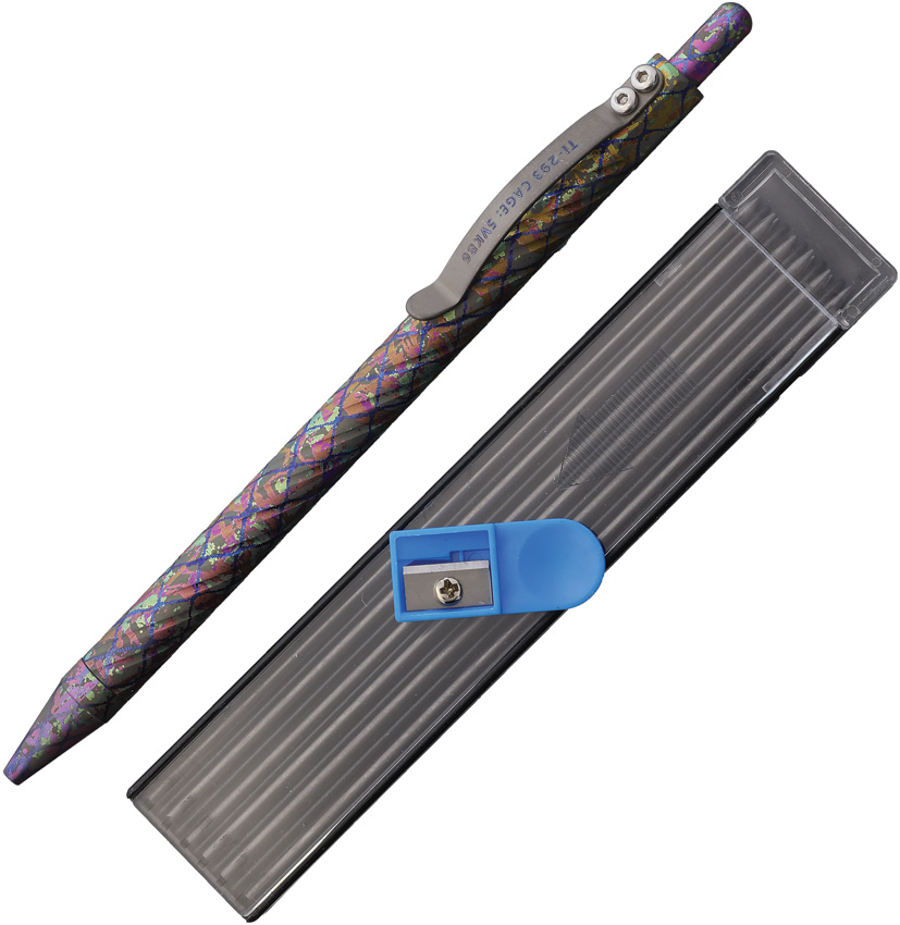 Dimensions: 6″ x .35″. Pocket clip. Includes 12 refills. Standard 2mm width. Color: Chaotic Aurora. Titanium construction. Bulk packed.