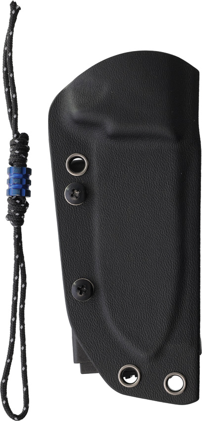 8.63″ (21.92cm) overall. 3.63″ (9.22cm) black oxide coated D2 tool steel drop point blade. Black and orange textured G10 handle. Full tang. Lanyard hole. Serialized run of 500 pieces. Titanium DTF bead. Black Kydex belt sheath. Bagged.