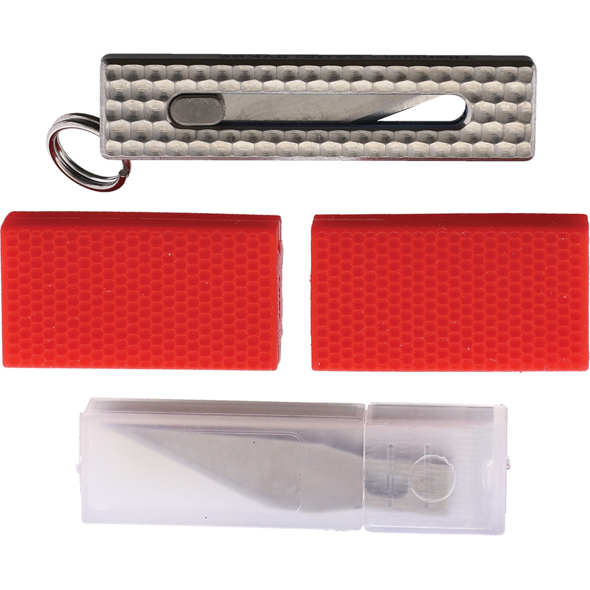 2″ (5.08cm) closed. 0.5″ (1.27cm) stainless blade. Stainless handle. Keyring. Plastic blade cover. Comes with 10 extra blades. Bulk packed.