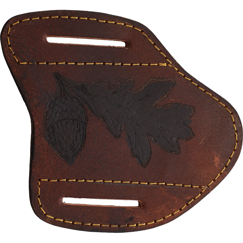 7″ (17.78cm) overall. 3″ (7.62cm) Damascus steel blade. Full tang. Stag and horn handle. Acorn sheath. Brown leather belt sheath. Boxed.