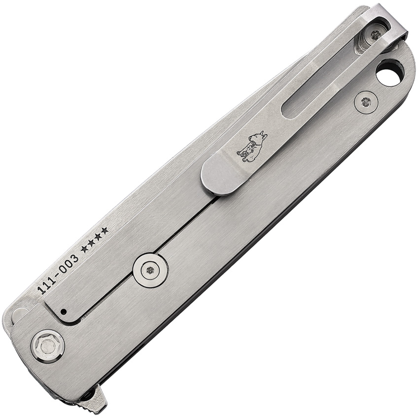 4.75″(12.07cm) closed. 3.75″ (9.53cm) stonewash finish S35VN stainless blade. Black tumbled finish aluminum handle. Extended tang. Lanyard hole. Pocket clip. Black nylon zippered storage case. Boxed. Please note: Blade steel may change without notice, depending on availability of materials at time of manufacture.