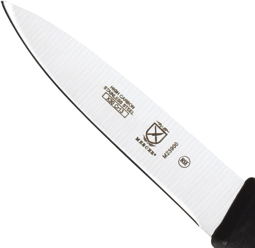 7″ (17.78cm) overall. 3″ (7.62cm) satin finish blade. Black Santoprene handle. X30Cr13 Japanese steel blade. Bulk packed.